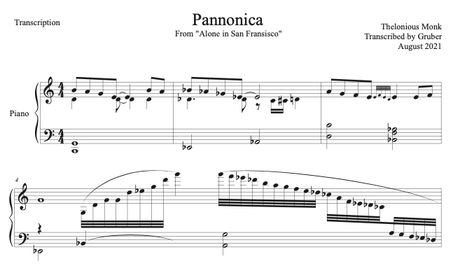 Solo Jazz Piano Transcription - Thelonious Monk - Pannonica